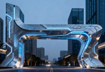 • 未來之樞 —— 不銹鋼科技感景觀雕塑大門?城市智創紀元地標